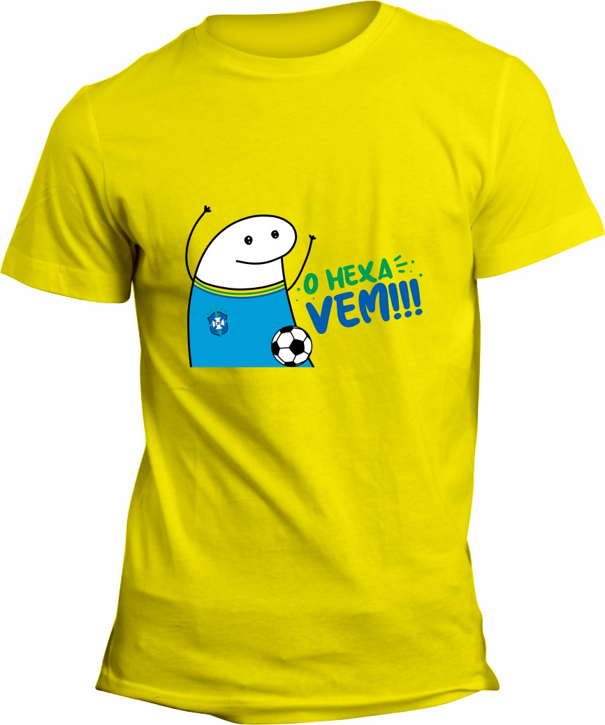 Camiseta Amarela Unissex Personalizada Pronta - O Hexa Vem